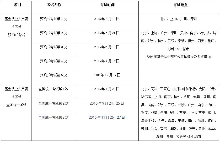 2016年基金从业资格考试时间已经公布,根据中国证券投资基金业协会《2016年度基金从业资格考试计划》,2016年基金从业资格考试时间如下: