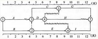 9、某工程双代号时标网络计划如图所示,其中工作A的总时差为( )天。
