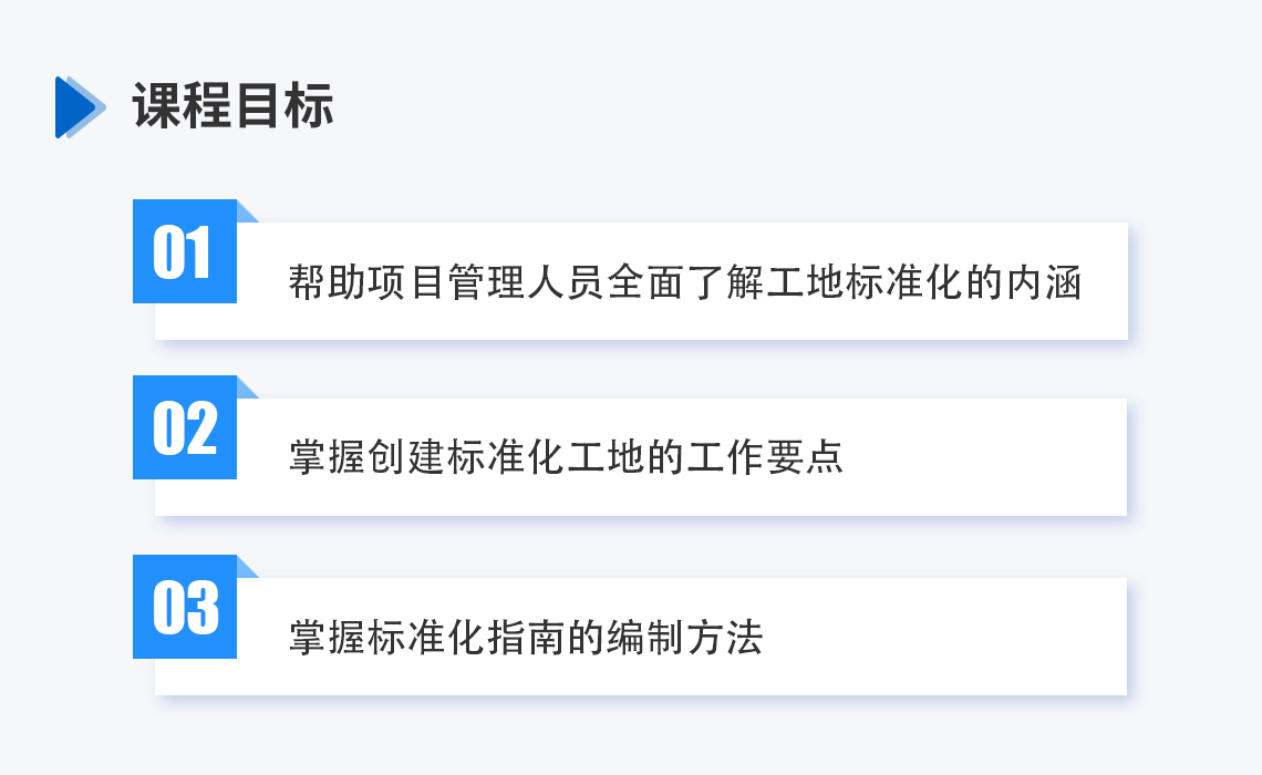 本课程系统地介绍标准化工地的创建,从项目部组建到生活区、办公区、临水临电、场站建设等标准化,使项目管理人员能够清楚地掌握标准化工地的创建方法,达到花最少的钱做出最好的效果。