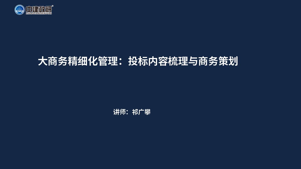 大商务精细化管理:投标内容梳理与商务策划