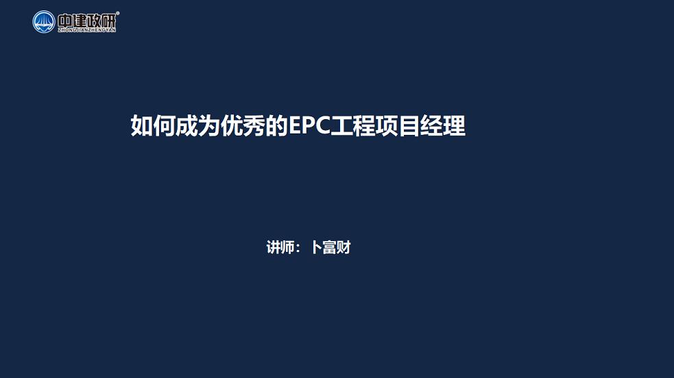 第10节 EPC项目经理应该正确理解EPC总承包合同的要求(一)