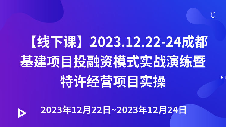 2023.12.22-24成都基建项目投融资模式实战演练暨特许经营项目实操